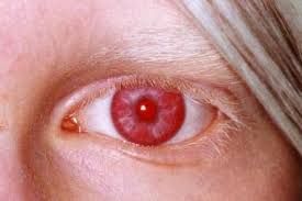 Além disso, é comum que pessoas com albinismo ocular aparentem ter olhos avermelhados. Esse efeito acontece por causa da nitidez dos vasos sanguíneos na retina. Logo, os olhos ganham uma coloração vermelha sobre a cor original da íris, sendo esta percebida em fotos ou vídeo.