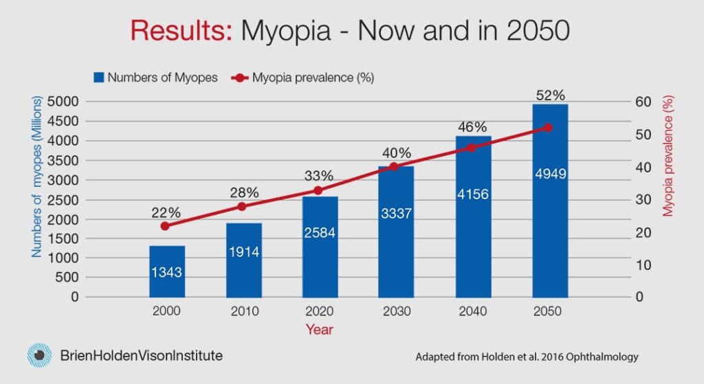 Importante referir que a miopia é o erro refrativo que mais afeta a população global. Nos últimos anos, a miopia tem apresentado uma tendência de crescimento elevado. Vários estudos preveem que, até 2050, a prevalência de miopia e alta miopia aumente para 52% e 9,8%, respectivamente. Portanto, é facilmente entendível a importância do controlo da progressão da miopia desde a tenra idade.