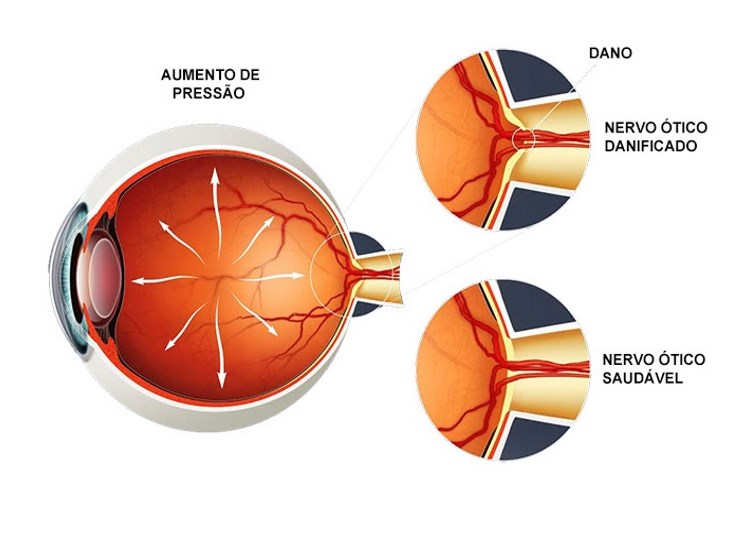 De um modo geral, o glaucoma relaciona-se com o aumento da pressão intraocular. Isso, por sua vez, acaba alterando todo o fluxo sanguíneo no órgão, e também prejudicando o nervo óptico. Assim, com o passar do tempo, a doença vai avançando, até poder causar a cegueira total.